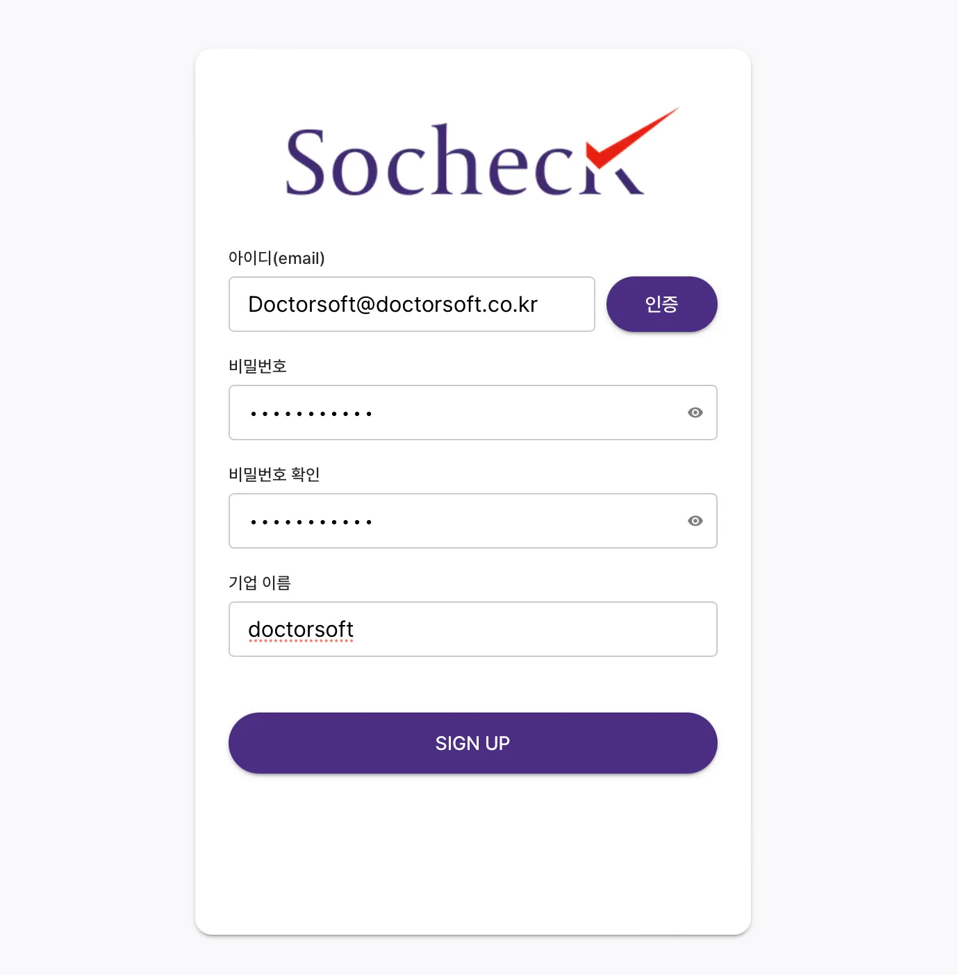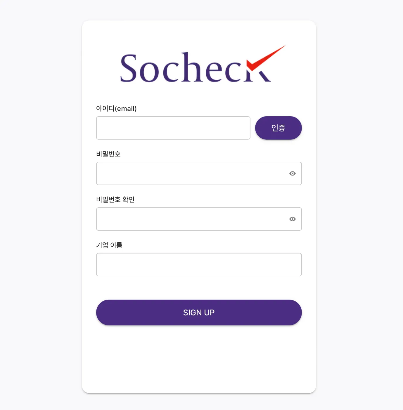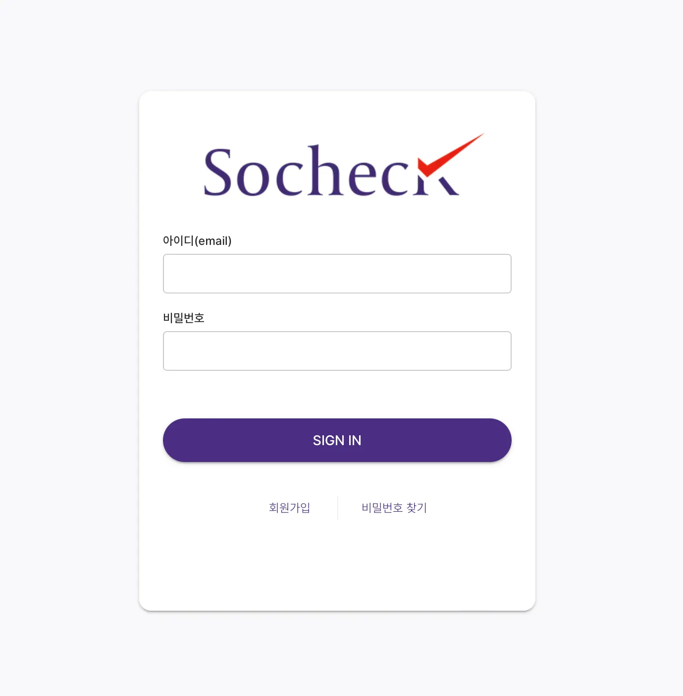Socheck을 사용하기 위해서는 간단하게 회원 가입을 진행해야 합니다.