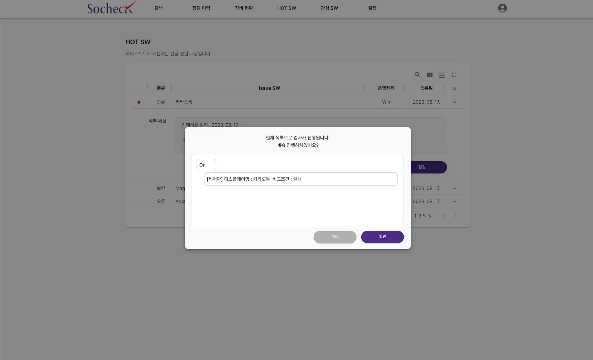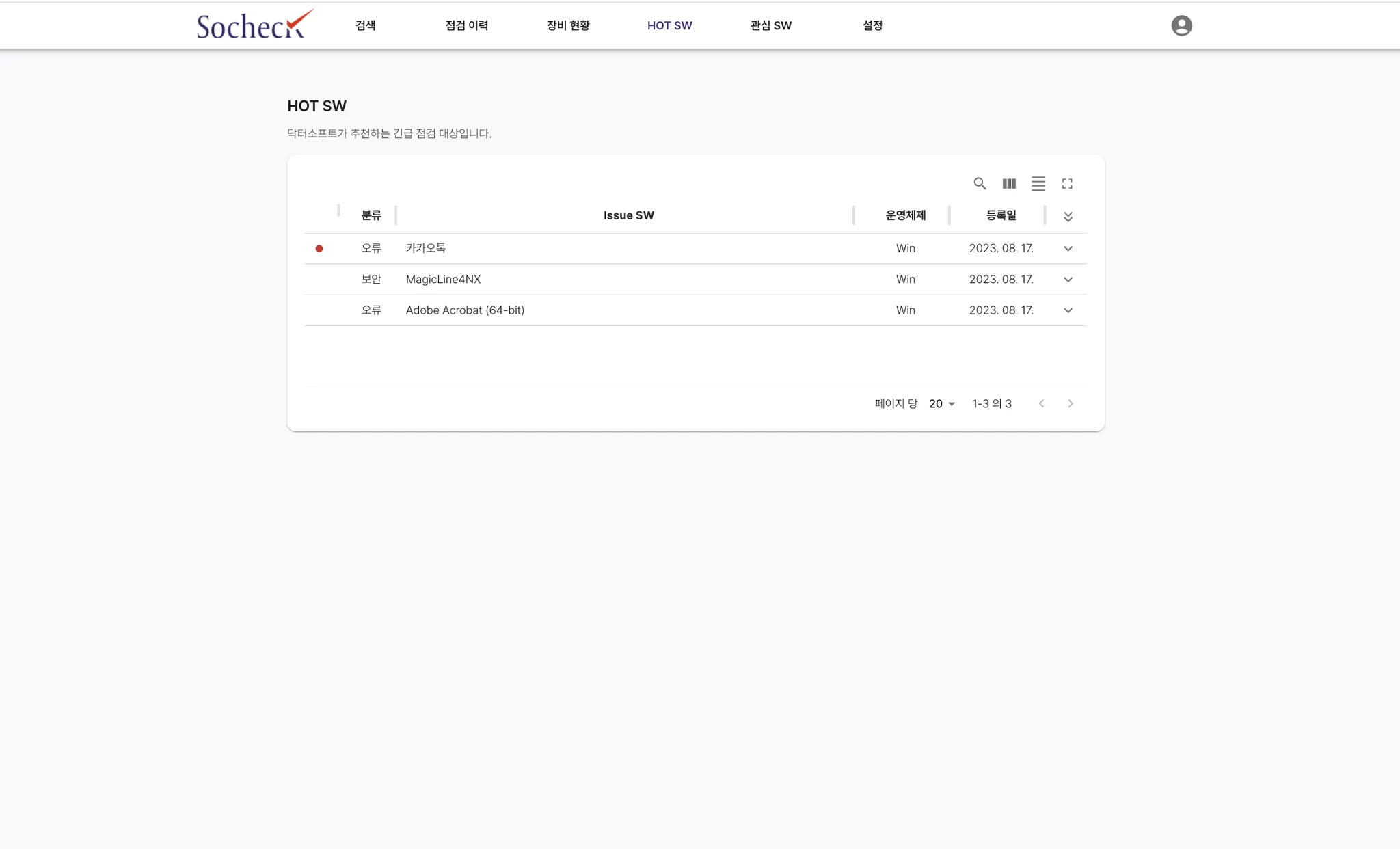 긴급한 이슈가 있는 SW들은 해당 화면에서 점검하실 수 있어요.