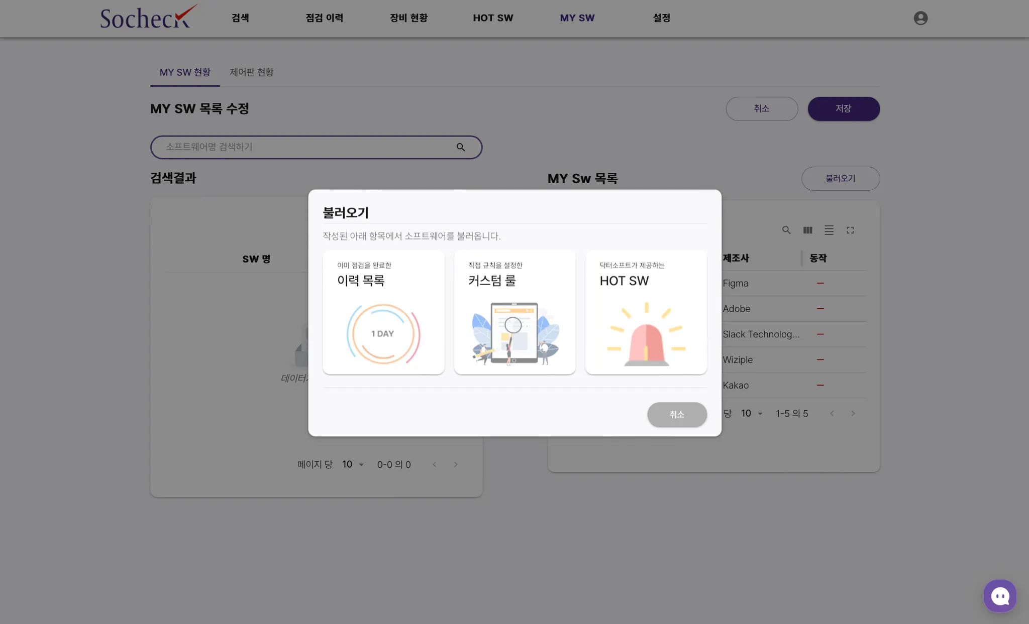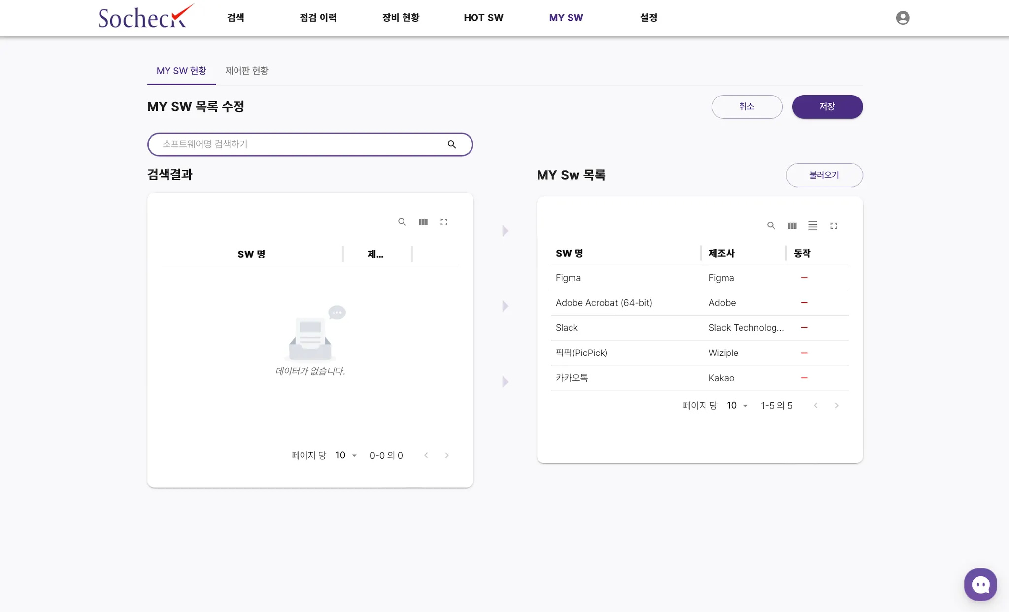 화면 좌측은 정기적인 점검을 하고 싶은 SW를 검색하여 추가해 만든 목록이며