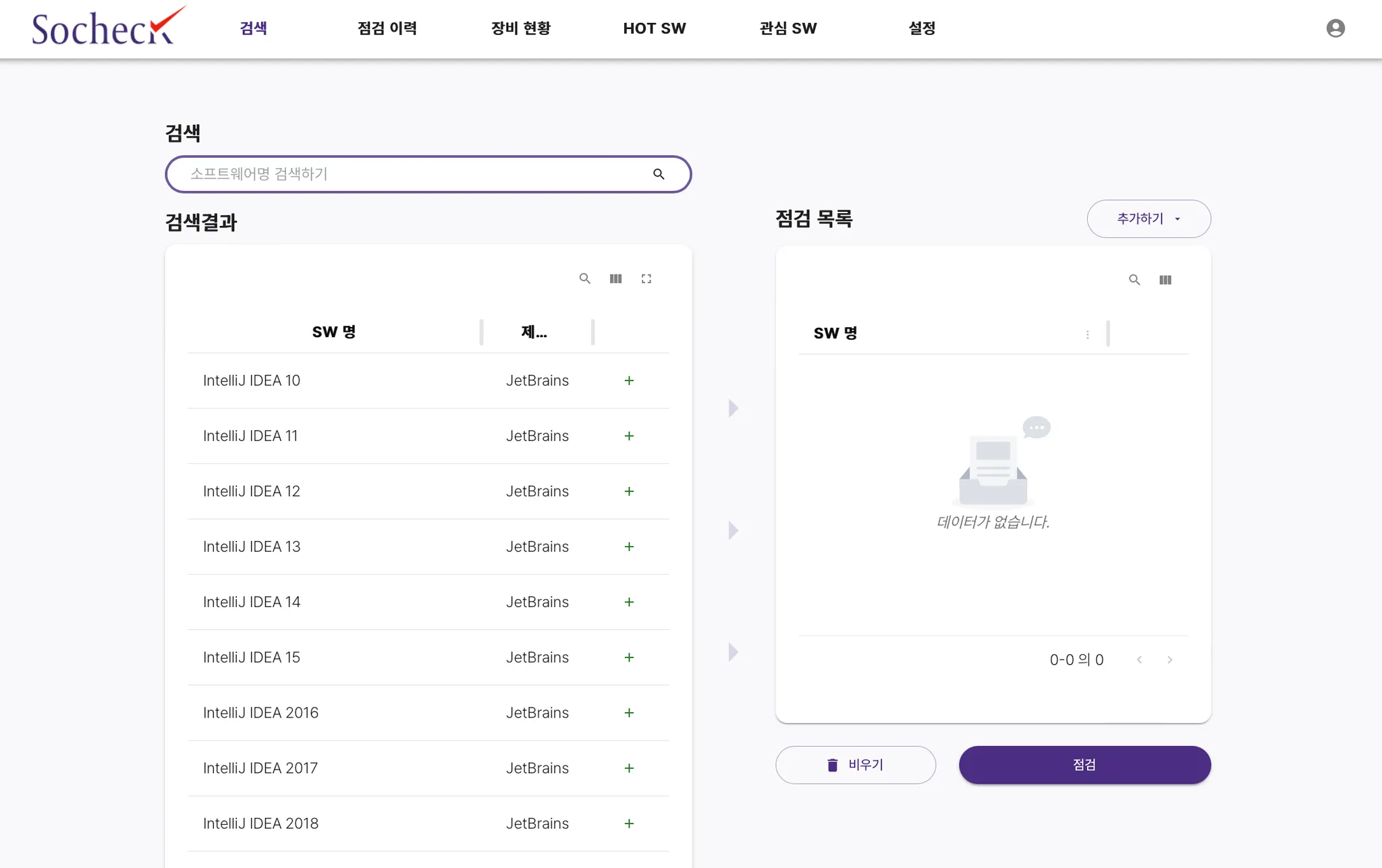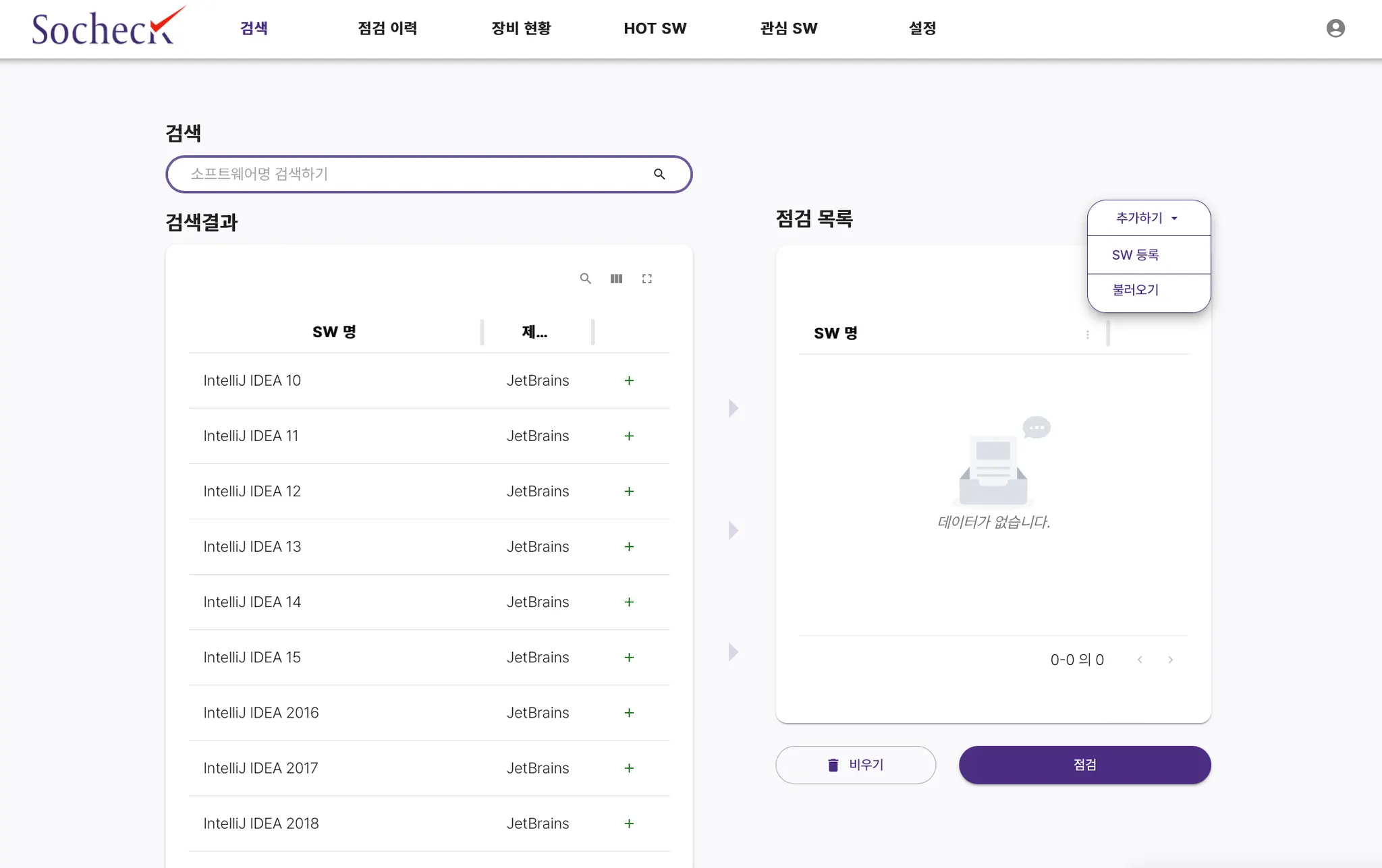 검색하기 기능에 대해 자세히 알아봤는데 소프트웨어 명 검색 후 [점검] 버튼을 누르면